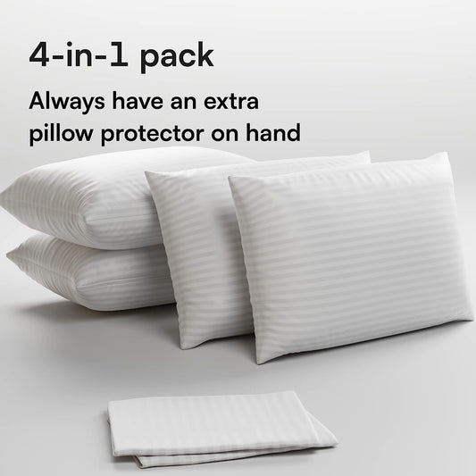 4 Pack Pillow Protectors Queen Cotton Sateen (20x30 In, 4 Pack)