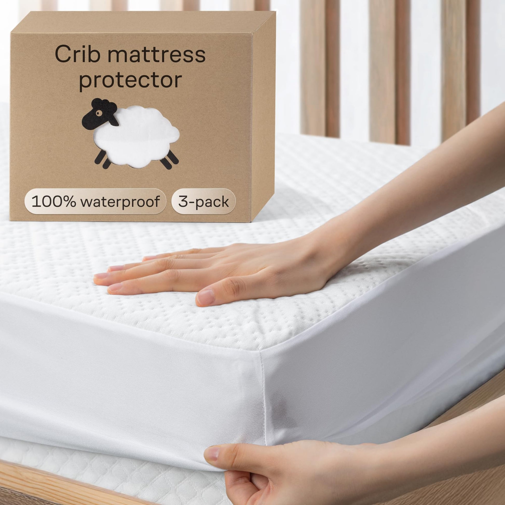 Niagara Crib 3 Pack 100% Waterproof Mattress Protector, Soft Breathable Crib Mattress Protector with Deep Pocket, Mattress Pad for Toddler and Baby (52x28, White) - Viscose Made from Bamboo